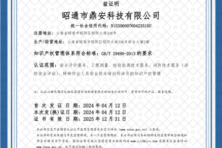 2003年11月10日,昭通市鼎安科技有限公司成立,初始主要從事第三方安全工程技術服務,經(jīng)多年運營,發(fā)展為多專業(yè)綜合科技平臺,為社會提供多種專業(yè)技術服務工作。 現(xiàn)公司注冊資金為1200萬元,公司法定代表人:毛衛(wèi)旭。公司主要業(yè)務:安全評價、安全標準化評審、安全工程技術服務;環(huán)境監(jiān)測、職業(yè)衛(wèi)生檢測、檢驗;法律訴訟及非訴訟服務;司法鑒定、固定資產(chǎn)投資項目節(jié)能服務;工程咨詢;工程測量測繪;安全教育培訓等。是安全生產(chǎn)服務、安全教育培訓機構,也是環(huán)境監(jiān)測和職業(yè)衛(wèi)生服務機構,同時也是綜合的檢測檢驗、綜合科技平臺服務機構。多年來為公、檢、法、司、軍、警、海關、仲裁、安監(jiān)、工礦商貿(mào)企業(yè)、社會團體及個人提供多專業(yè)技術服務。